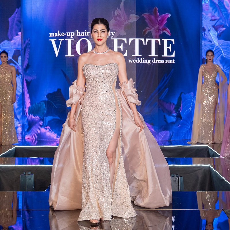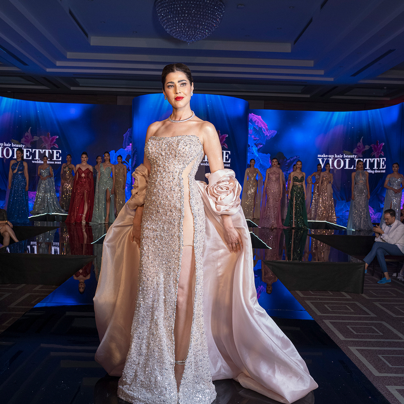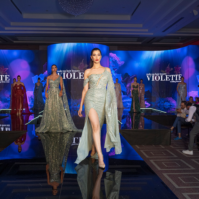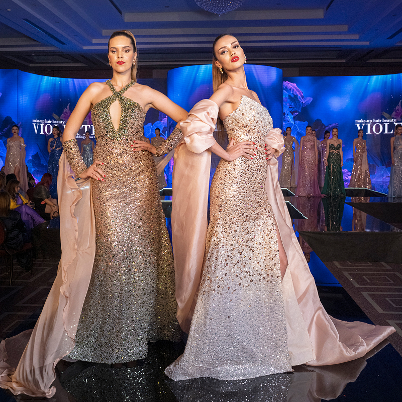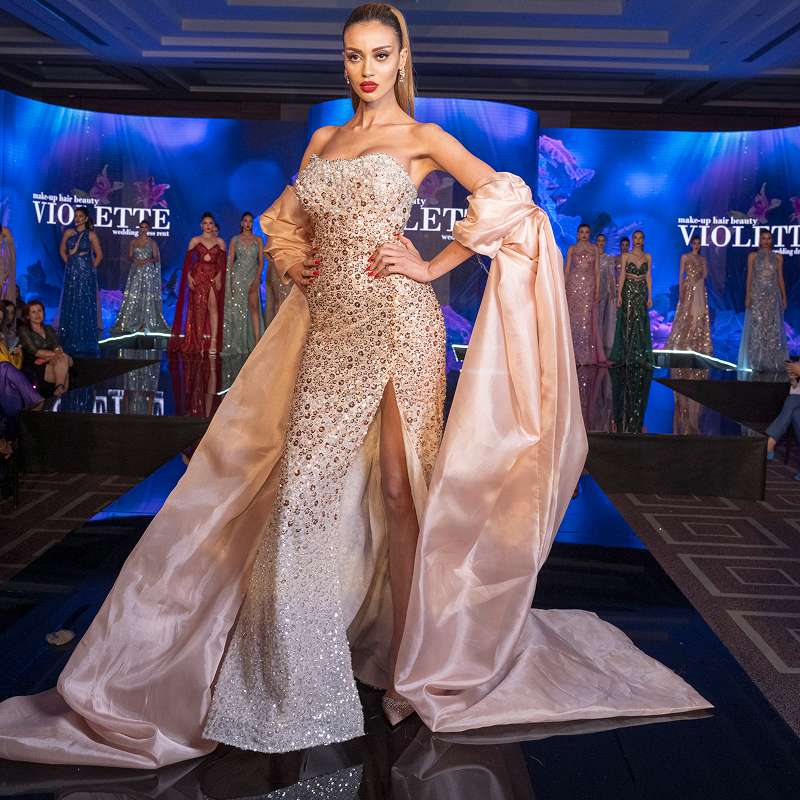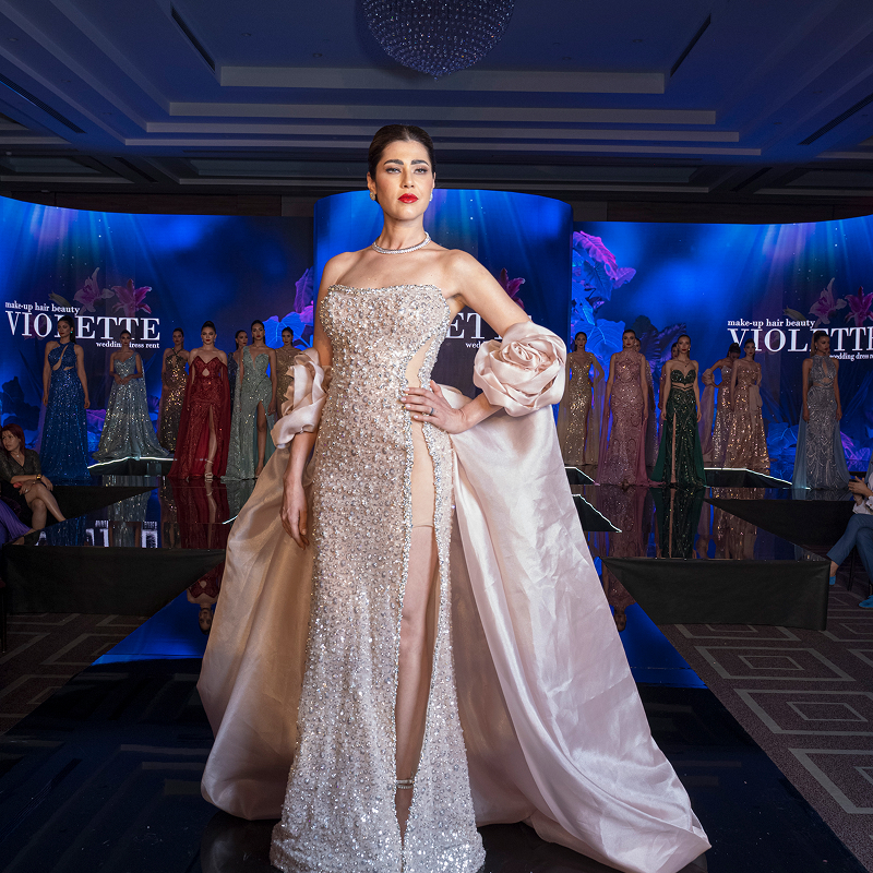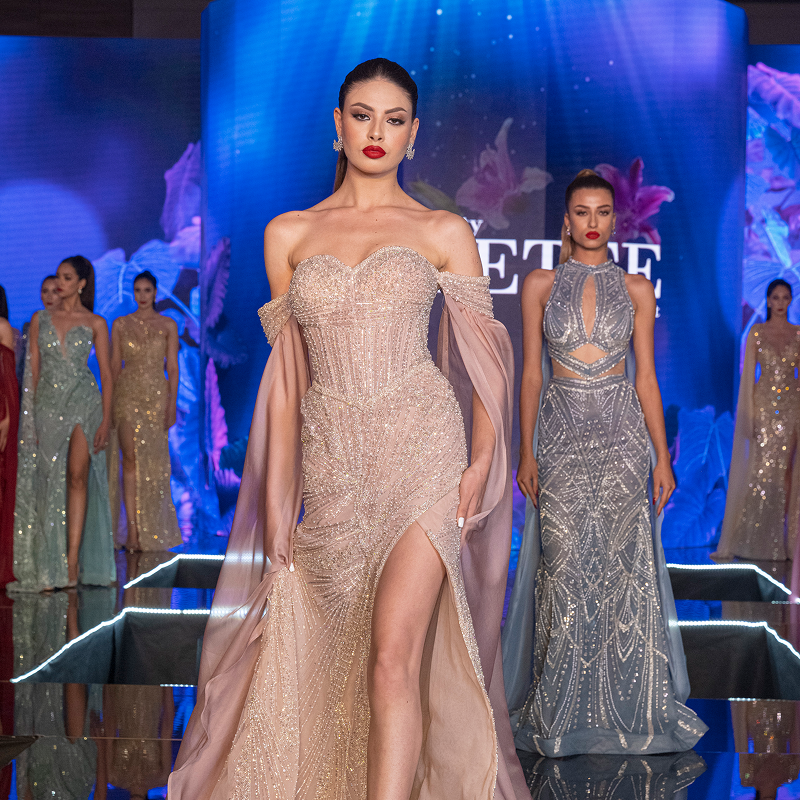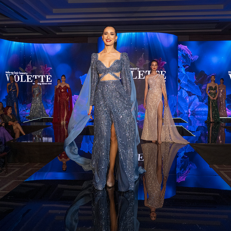 Violette a assuré le maquillage de l’ensemble des mannequins, mettant en valeur chaque visage à travers des looks sophistiqués, lumineux et parfaitement adaptés aux robes de soirée présentées lors du défilé. En parallèle, Violette a participé au défilé avec une collection de robes de soirée, incarnant le luxe, l’élégance et la créativité tunisienne.