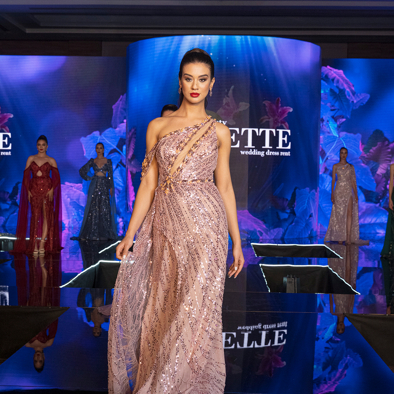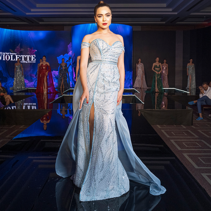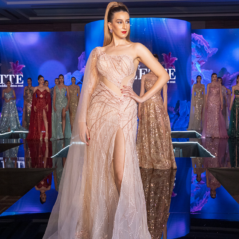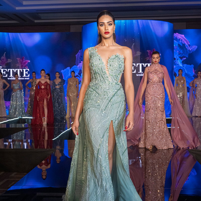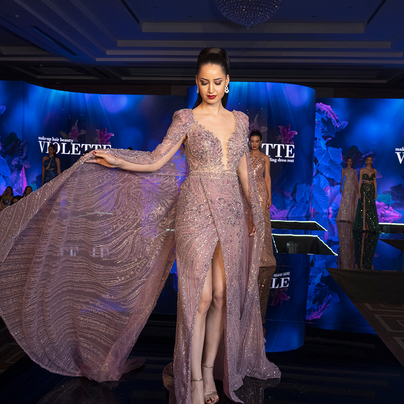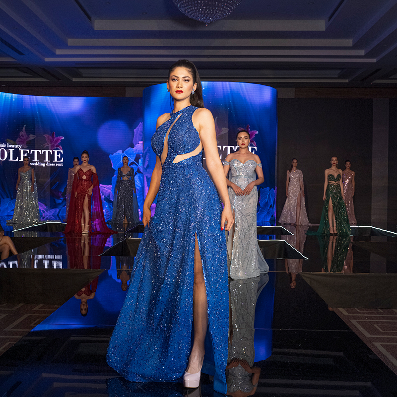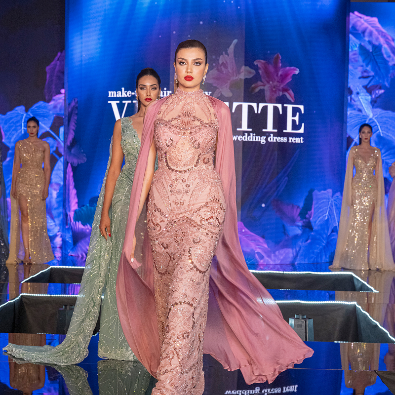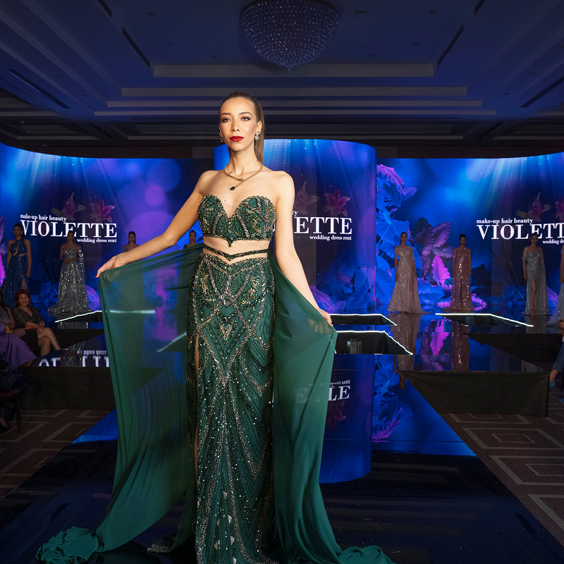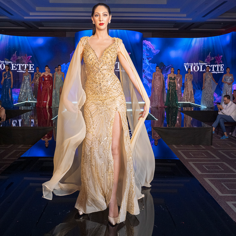 Violette a assuré le maquillage de l’ensemble des mannequins, mettant en valeur chaque visage à travers des looks sophistiqués, lumineux et parfaitement adaptés aux robes de soirée présentées lors du défilé. En parallèle, Violette a participé au défilé avec une collection de robes de soirée, incarnant le luxe, l’élégance et la créativité tunisienne.